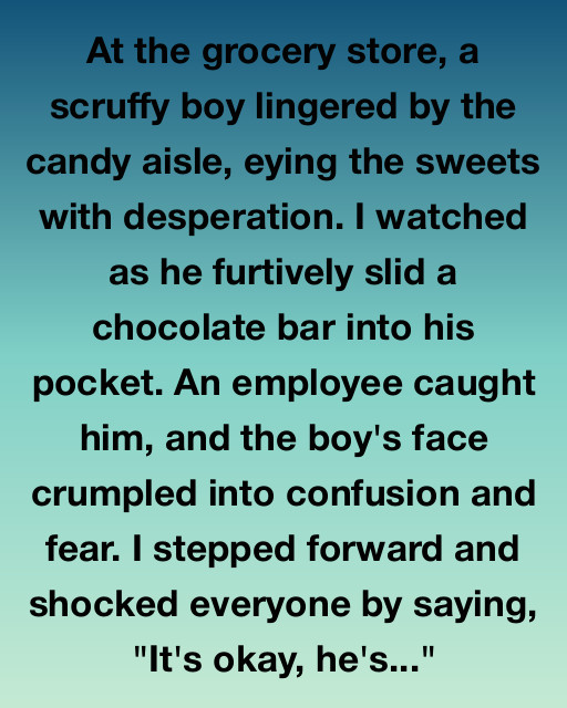 At the grocery store, a scruffy boy lingered by the candy aisle, eying the sweets with desperation. I watched as he furtively slid a chocolate bar into his pocket. An employee caught him, and the boy’s face crumpled into confusion and fear. I stepped forward and shocked everyone by saying, “It’s okay, he’s my little brother.”
