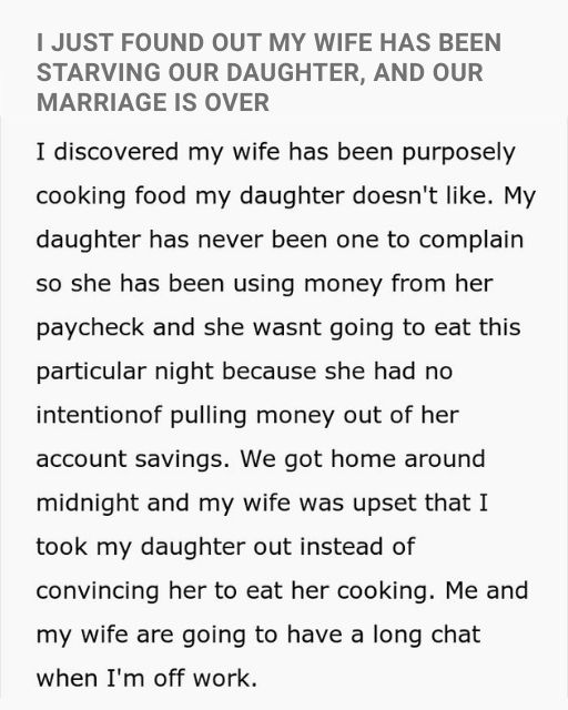I Just Found Out My Wife Has Been Starving Our Daughter, And Our Marriage Is Over