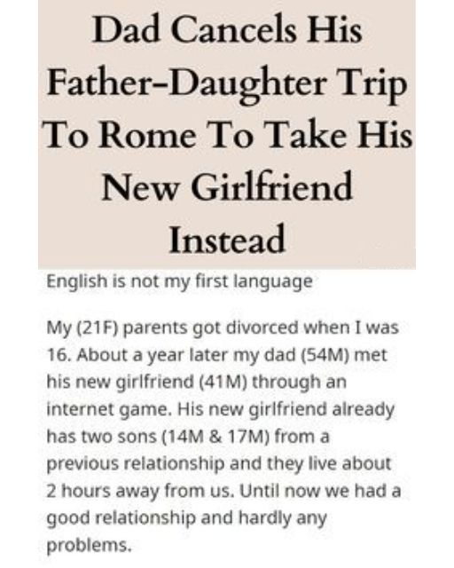 My Dad Promised Me A Trip To RomeโThen Gave My Plane Ticket To His Girlfriend