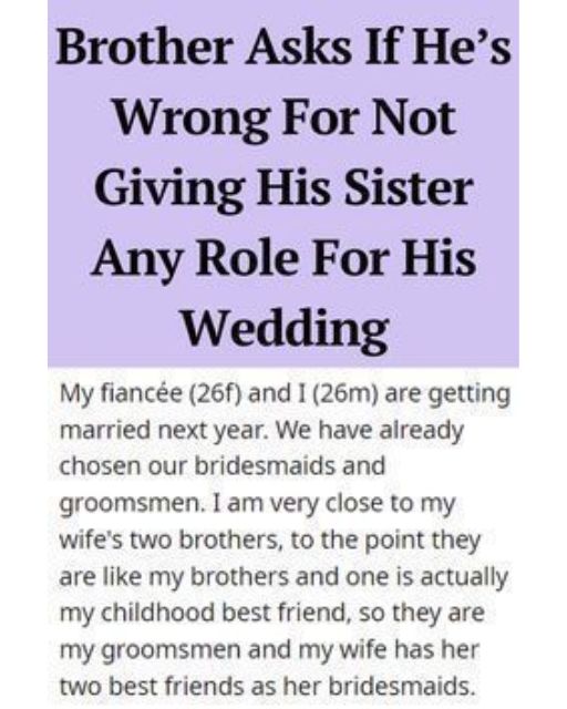 I Asked My Wifeโs Brothers To Be In The WeddingโBut Left My Own Sister Out