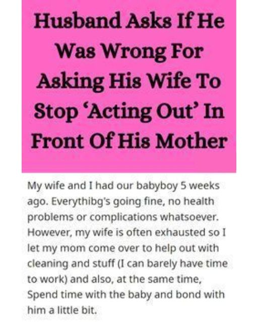 My Wife Just Had A BabyโBut When My Mom Visits, She โActs Outโ And I Called Her On It