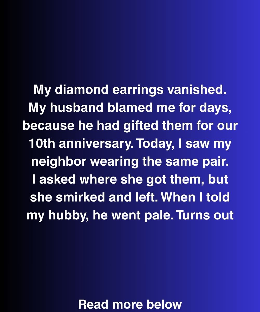 My Diamond Earrings VanishedโThen I Saw My Neighbor Wearing Them And My Husband Turned Pale