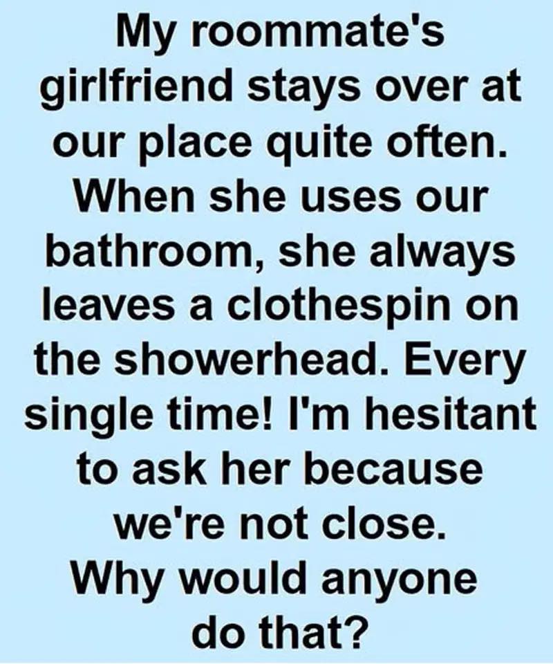 My Roommate’s Girlfriend Leaves A Clothespin On The ShowerheadโBut The Truth Silenced Me