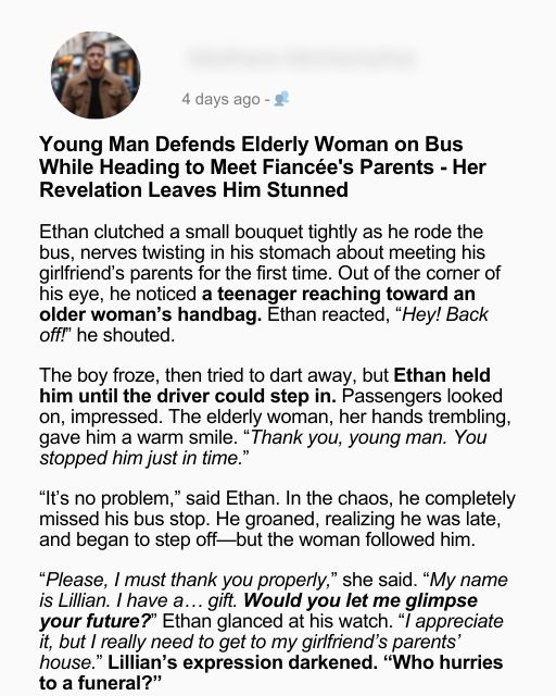 Young Man Defends Elderly Woman on Bus While Heading to Meet Fiancรฉe’s Parents – Her Revelation Leaves Him Stunned