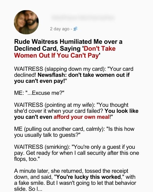 Rude Waitress Humiliated Me Over a Declined Card, Saying ‘Don’t Take Women Out If You Can’t Pay’
