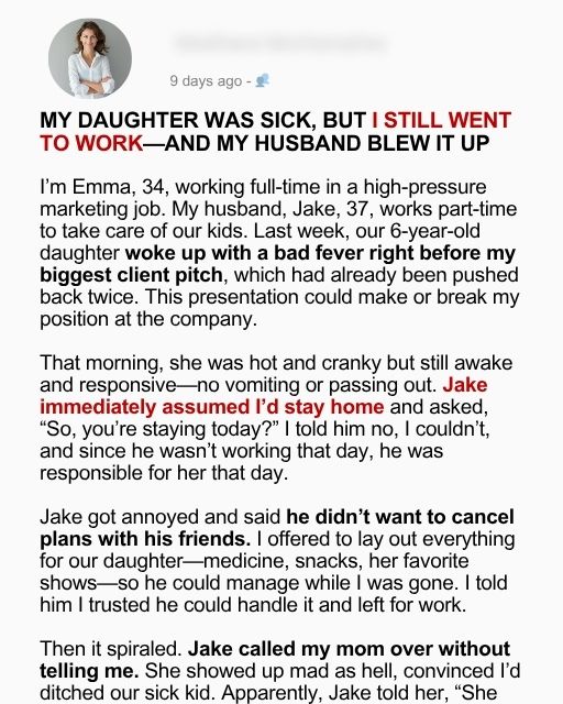 My Daughter Was Sick, But I Still Went To WorkโAnd My Husband Blew It Up
