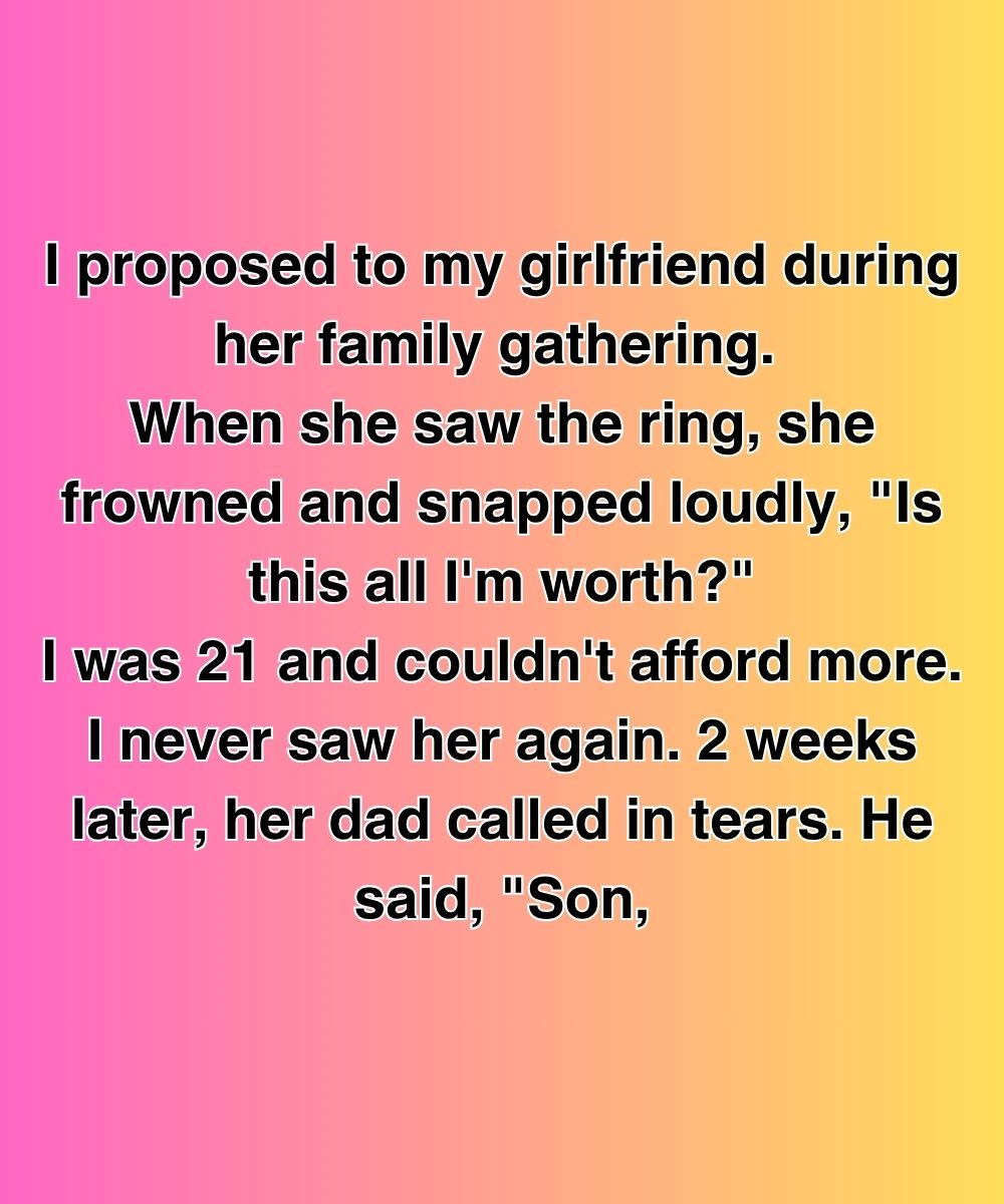 She Laughed At My Proposal RingโBut Two Weeks Later, Her Dad Called Me โSonโ
