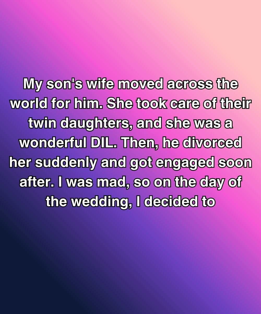 My Son’s Wife Moved Across The World For HimโSo I Took Her Side At His Wedding