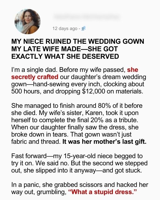 My Niece Ruined the Wedding Gown My Late Wife Made – She Got Exactly What She Deserved
