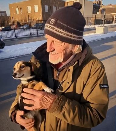 While loading the car, I noticed a man sitting by the edge of the parking lot. He was huddled under a tattered blanket, his face red from the cold. Next to him sat a dog—a scruffy little mutt, visibly shivering. As we were going to leave, the man stood up and approached us. My heart jumped—I wasn’t sure what he wanted.