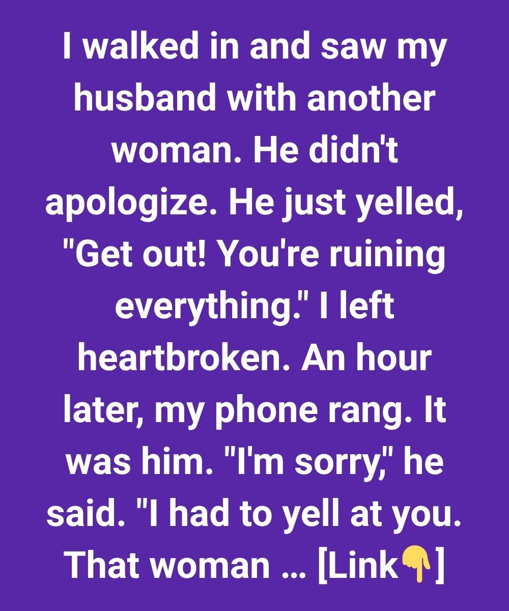 I walked in and saw my husband with another woman. He didn’t apologize. He just yelled, “Get out! You’re ruining everything.” I left heartbroken. An hour later, my phone rang. It was him. “I’m sorry,” he said. “I had to yell at you. That woman…”