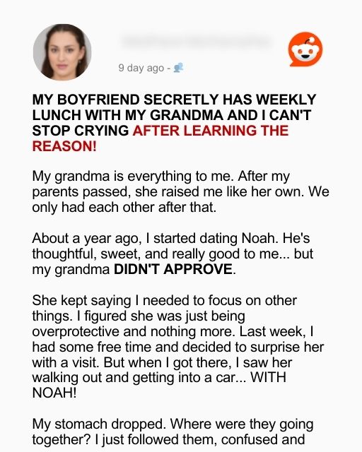 My grandma is everything to me. After my parents passed, she raised me like her own. We only had each other after that. About a year ago, I started dating Noah. He’s thoughtful, sweet, and really good to me… but my grandma DIDN’T APPROVE. She kept saying I needed to focus on other things. I figured she was just being overprotective and nothing more.