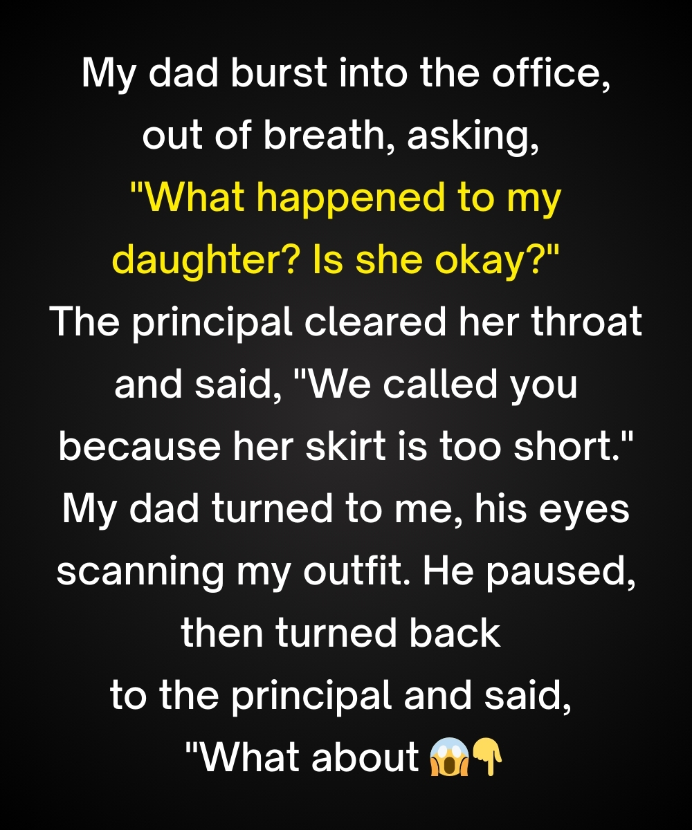 The principal cleared her throat and said, “We called you because her skirt is too short.”