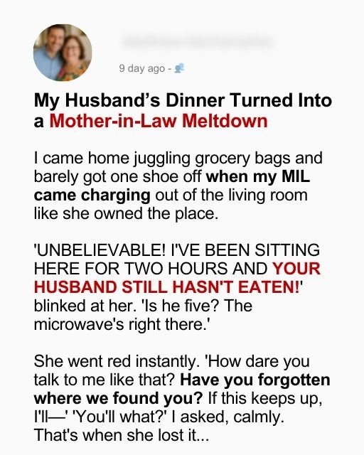 I came home juggling grocery bags and barely got one shoe off when my MIL came charging out of the living room like she owned the place.
