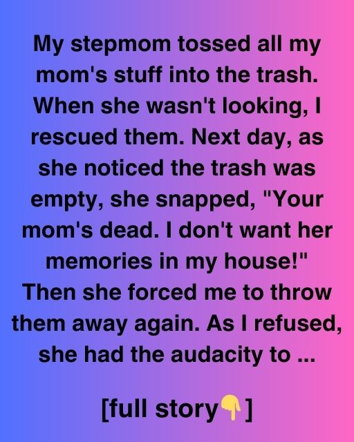 My stepmom tossed all my mom’s stuff into the trash. When she wasn’t looking, I rescued them. Next day, as she noticed the trash was empty, she snapped, “Your mom’s dead. I don’t want her memories in my house!”