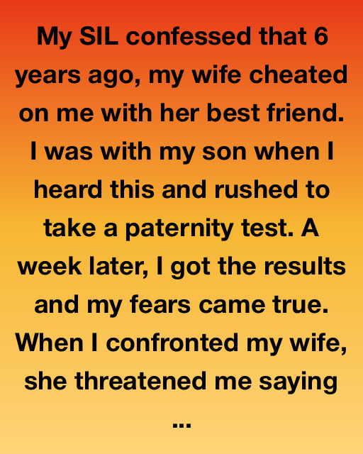 My SIL confessed that 6 years ago, my wife cheated on me with her best friend. I was with my son when I heard this and rushed to take a paternity test. A week later, I got the results and my fears came true. When I confronted my wife, she threatened me saying “If you try to leave and take him away from me, I’ll make sure you never see him again.”