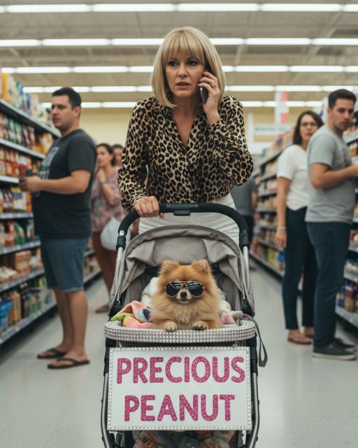 I parked outside the store on Friday. Sure enough, around 11 a.m., the van rolled in. I watched her climb out with her stroller, looking just as dramatic as I remembered—flowy shawl, oversized beads, and those ridiculous doggie sunglasses.