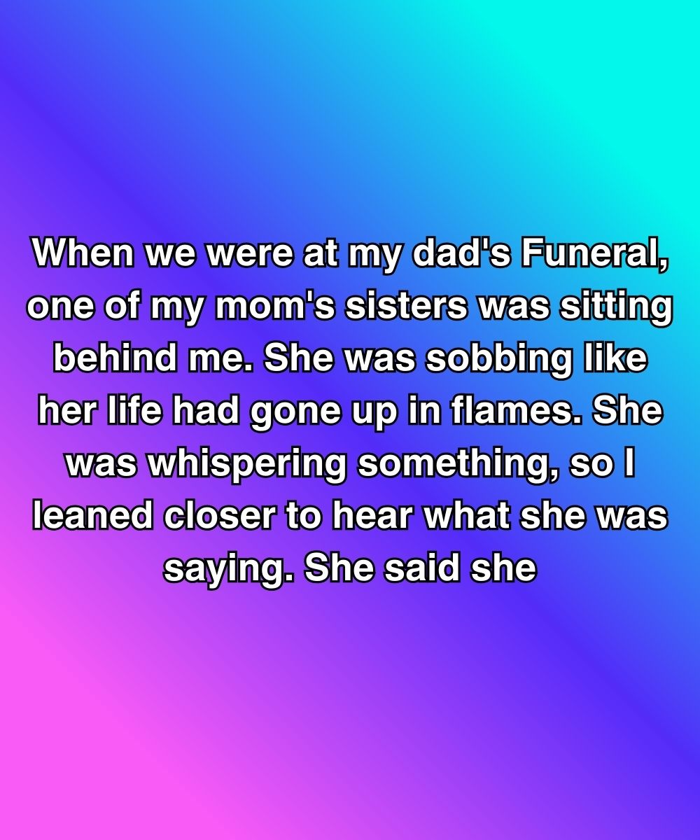 When we were at my dad’s funeral, one of my mom’s sisters was sitting behind me. She was sobbing like her life had gone up in flames. She was whispering something, so I leaned closer to hear what she was saying. She said she was sorry—but not to me, and not for what I thought.