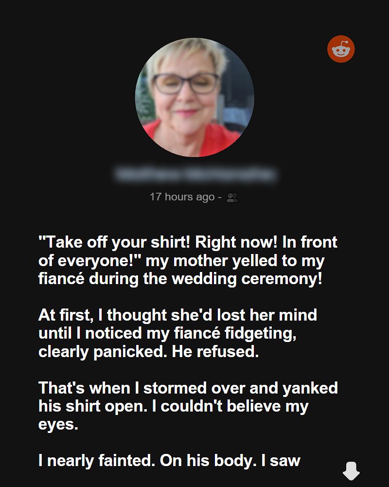 Take off your shirt! Right now! In front of everyone!” my mother yelled to my fiancé during the wedding ceremony!