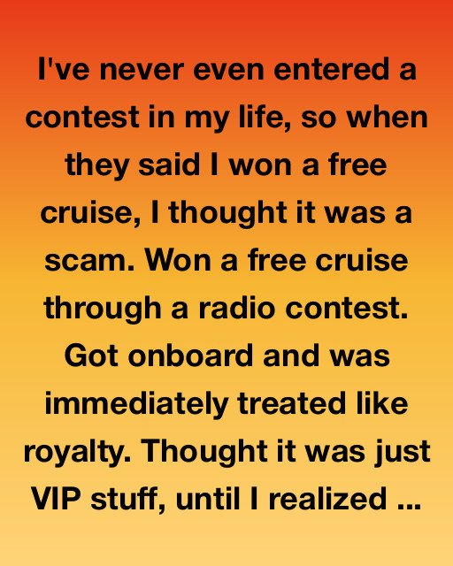 I’ve never even entered a contest in my life, so when they said I won a free cruise, I thought it was a scam. Won a free cruise through a radio contest. Got onboard and was immediately treated like royalty. Thought it was just VIP stuff, until I realized something was definitely off.