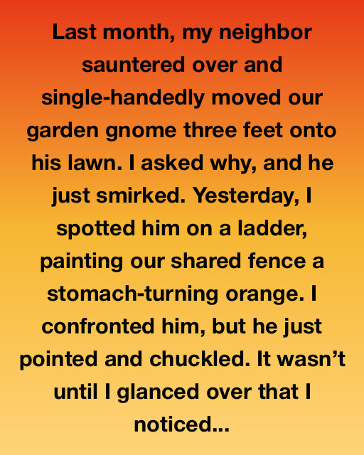 Last month, my neighbor sauntered over and singleโhandedly moved our garden gnome three feet onto his lawn. I asked why, and he just smirked. Yesterday, I spotted him on a ladder, painting our shared fence a stomachโturning orange. I confronted him, but he just pointed and chuckled. It wasnโt until I glanced over that I noticed an intriguing clue hidden beneath the hedges.