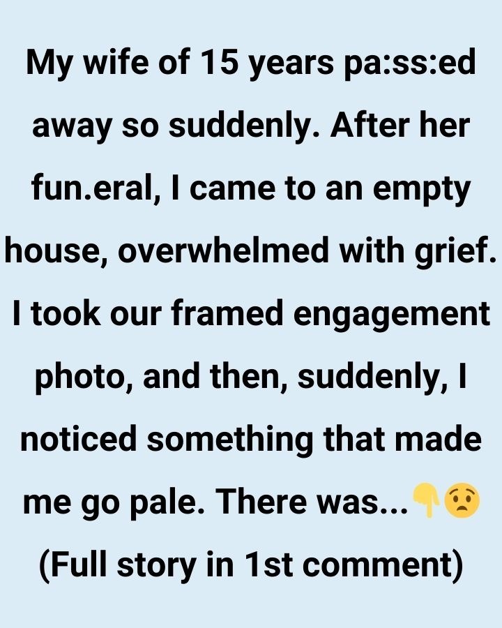 My wife of 15 years passed away so suddenly. After her funeral, I came to an empty house, overwhelmed with grief. I took our framed engagement photo, and then, suddenly, I noticed something that made me go pale. There was a folded letter tucked behind the frame, yellowed at the edges, like it had been there for years, waiting for someone to find it. My hands shook as I pulled it out and read the first line: ‘To my dearest Alden, if youโre reading this, it means Iโm gone, and thereโs something you need to knowโฆ’