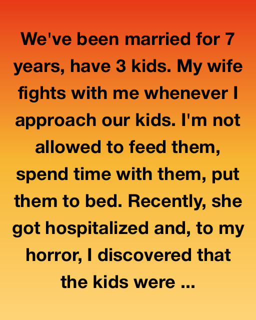 We’ve been married for 7 years, have 3 kids. My wife fights with me whenever I approach our kids. I’m not allowed to feed them, spend time with them, put them to bed. Recently, she got hospitalized and, to my horror, I discovered that the kids were scared of me. Like really scared.
