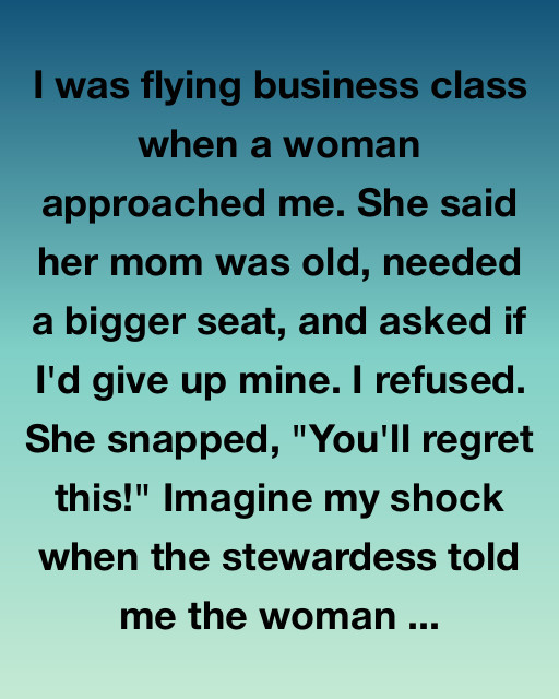 I was flying business class when a woman approached me. She said her mom was old, needed a bigger seat, and asked if I’d give up mine. I refused. She snapped, “You’ll regret this!” Imagine my shock when the stewardess told me the woman was the airline owner’s daughter.