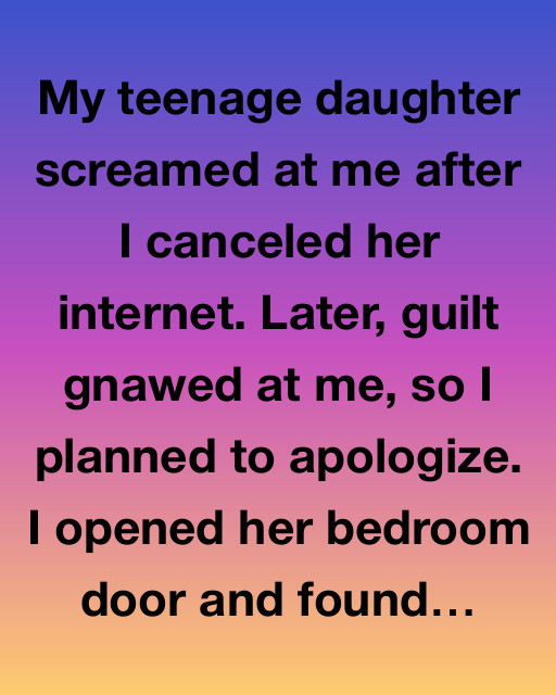My teenage daughter screamed at me after I canceled her internet. Later, guilt gnawed at me, so I planned to apologize. I opened her bedroom door and found her with tears streaming down her face, clutching a picture frame of happier times.