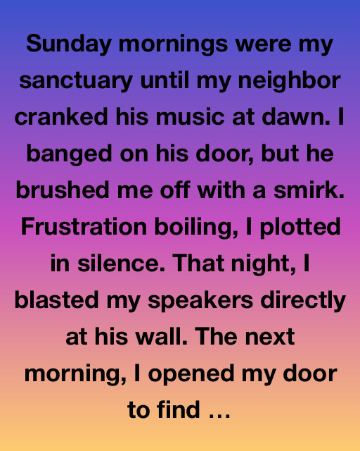 Sunday mornings were my sanctuary until my neighbor cranked his music at dawn. I banged on his door, but he brushed me off with a smirk. Frustration boiling, I plotted in silence. That night, I blasted my speakers directly at his wall. The next morning, I opened my door to find a note slipped under it.