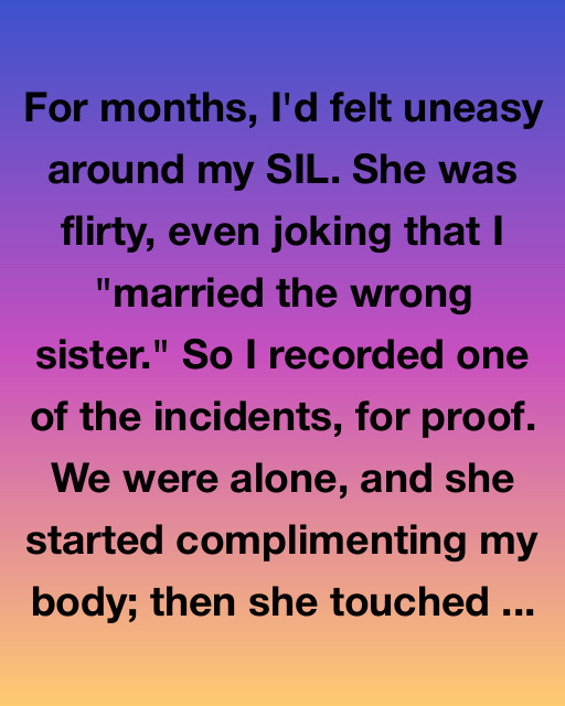 For months, I’d felt uneasy around my sister-in-law. She was flirty, even joking that I “married the wrong sister.” So I recorded one of the incidents, for proof. We were alone, and she started complimenting my body; then she touched my arm and let her fingers trail a bit too long.