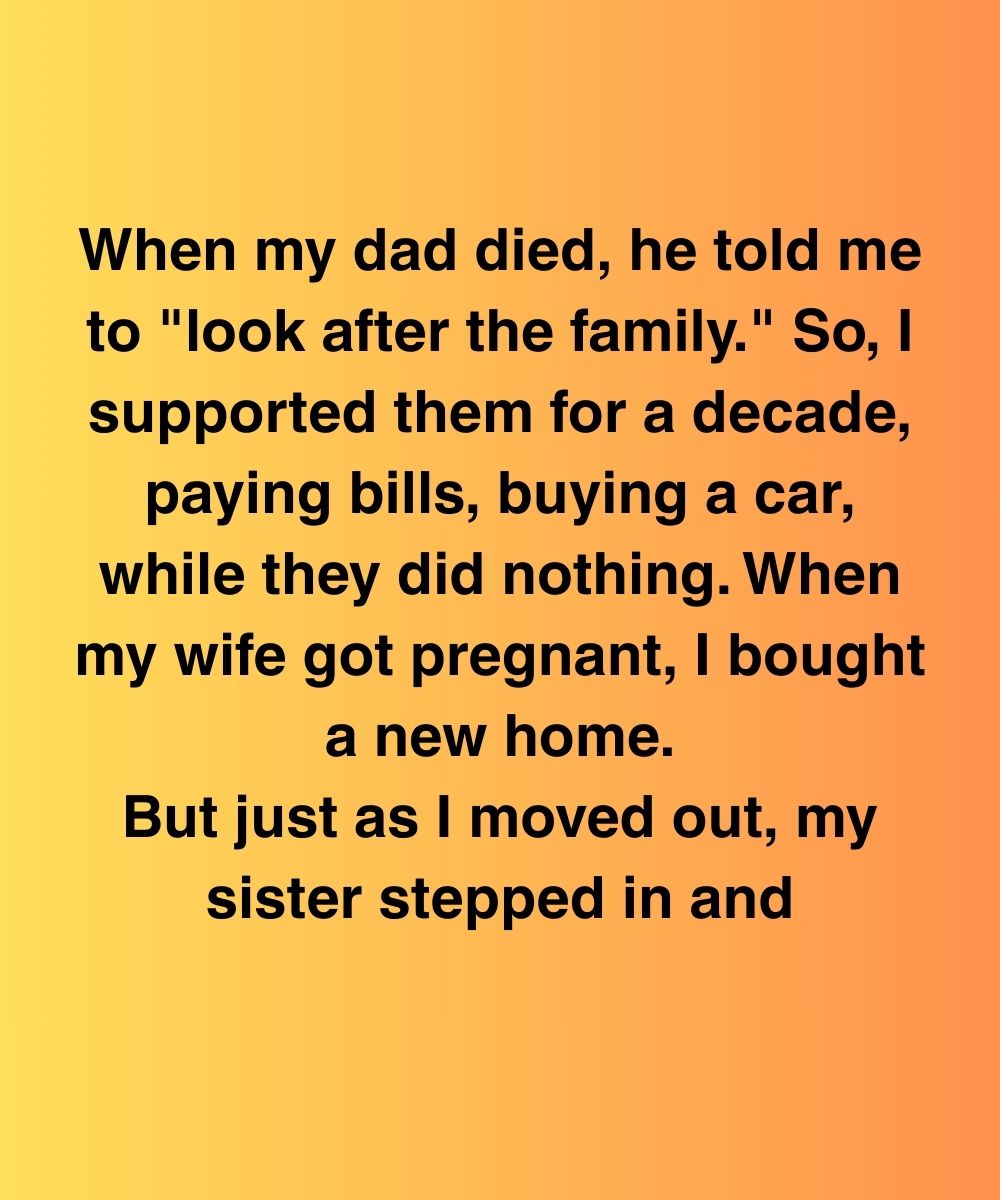 When my dad died, he told me to “look after the family.” So, I supported them for a decade, paying bills, buying a car, while they did nothing. When my wife got pregnant, I bought a new home.